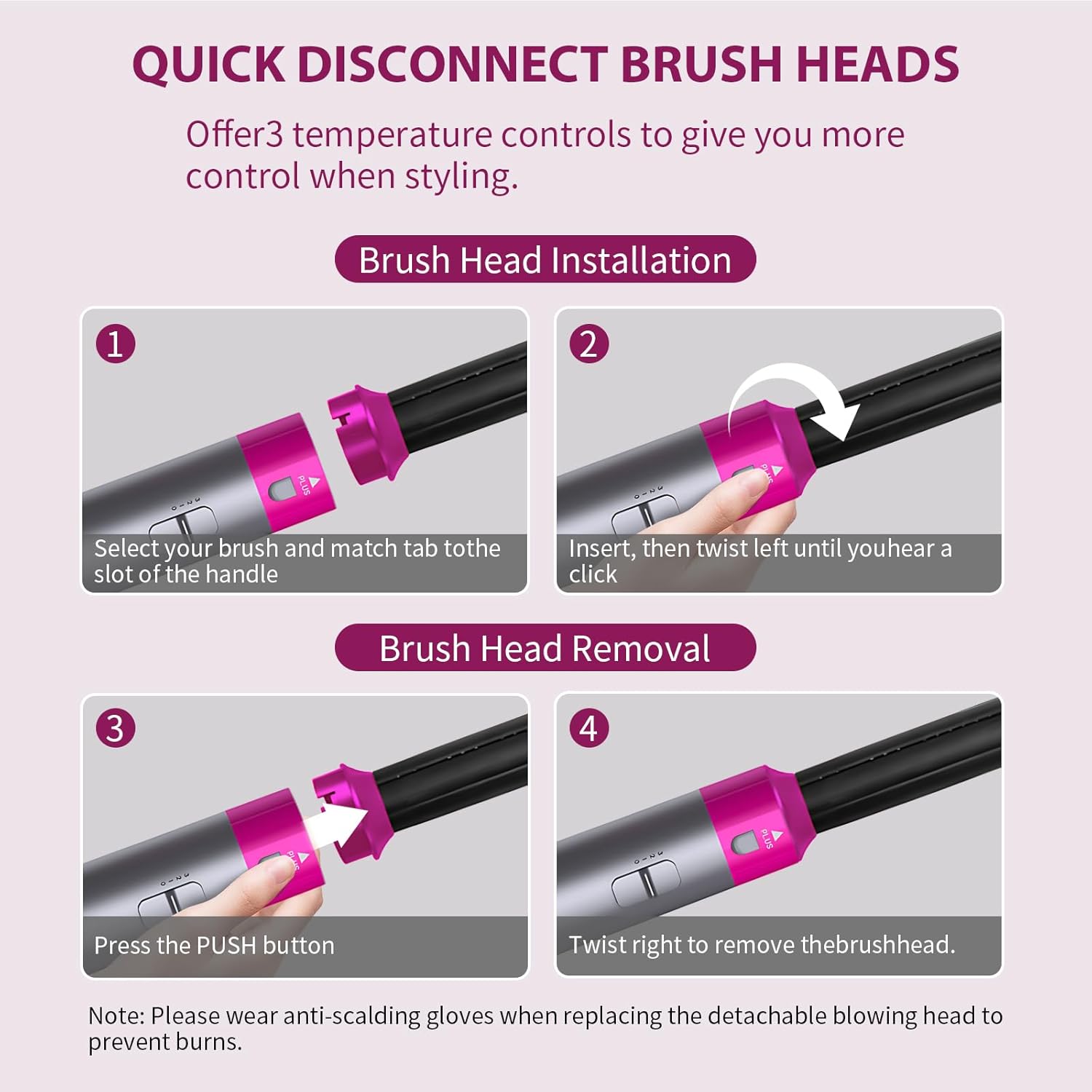 Gli accessori intercambiabili ti permettono di cambiare look in pochi minuti, mentre il calore uniforme aiuta a ridurre l’effetto crespo e a mantenere i capelli morbidi e luminosi.